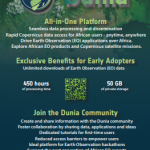 - Early adopters of the Dunia community will receive 450 hours of processing time, 50 GB of private storage and unlimited downloads of Earth Observation (EO) Data.